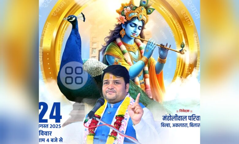“24 अगस्त को बिल्हा में भव्य भजन संध्या का आयोजन, प्रसिद्ध कथावाचक विनयकांत त्रिपाठी जी करेंगे प्रस्तुति”।