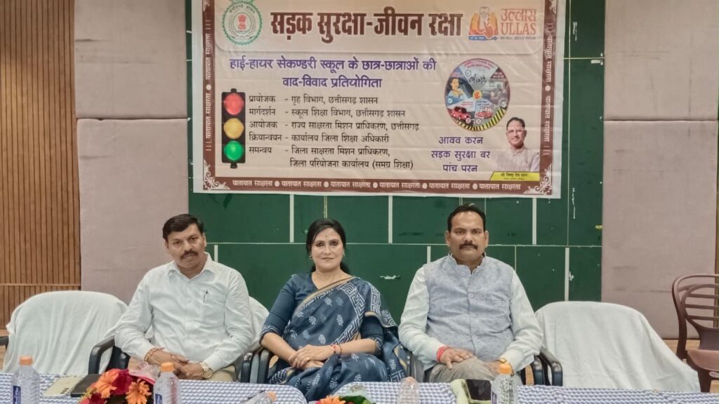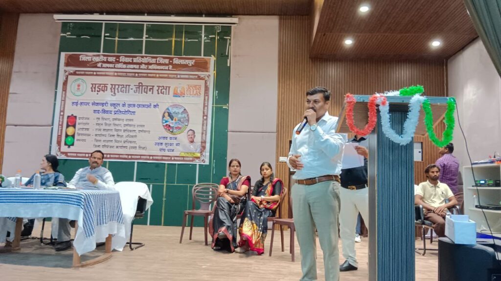 बिलासपुर। “सड़क सुरक्षा जीवन रक्षा” विषय पर जिला स्तरीय वाद-विवाद प्रतियोगिता का आयोजन शनिचरी बाजार स्थित पं. देवकीनंदन दीक्षित सभाभवन में किया गया। कार्यक्रम का शुभारंभ बिलासपुर की महापौर श्रीमती पूजा विधानी एवं जिला पंचायत अध्यक्ष श्री राजेश सूर्यवंशी ने दीप प्रज्वलित कर किया। इस अवसर पर जनप्रतिनिधियों एवं शिक्षा विभाग के वरिष्ठ अधिकारी उपस्थित रहे।