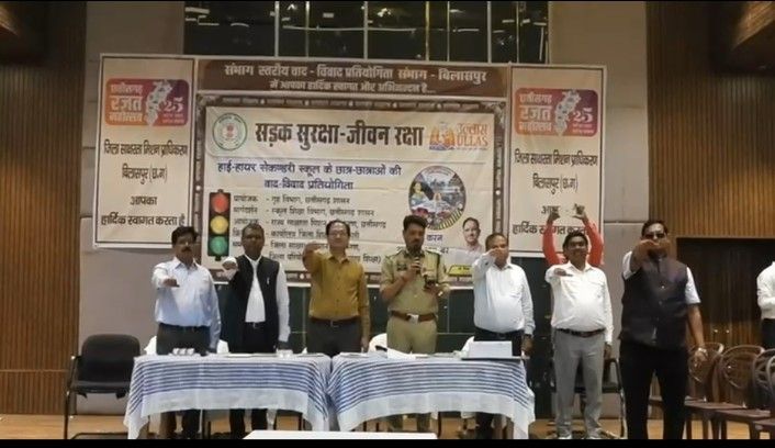 सड़क सुरक्षा जीवन रक्षा विषय पर संभाग स्तरीय वाद-विवाद प्रतियोगिता बिलासपुर संपन्न