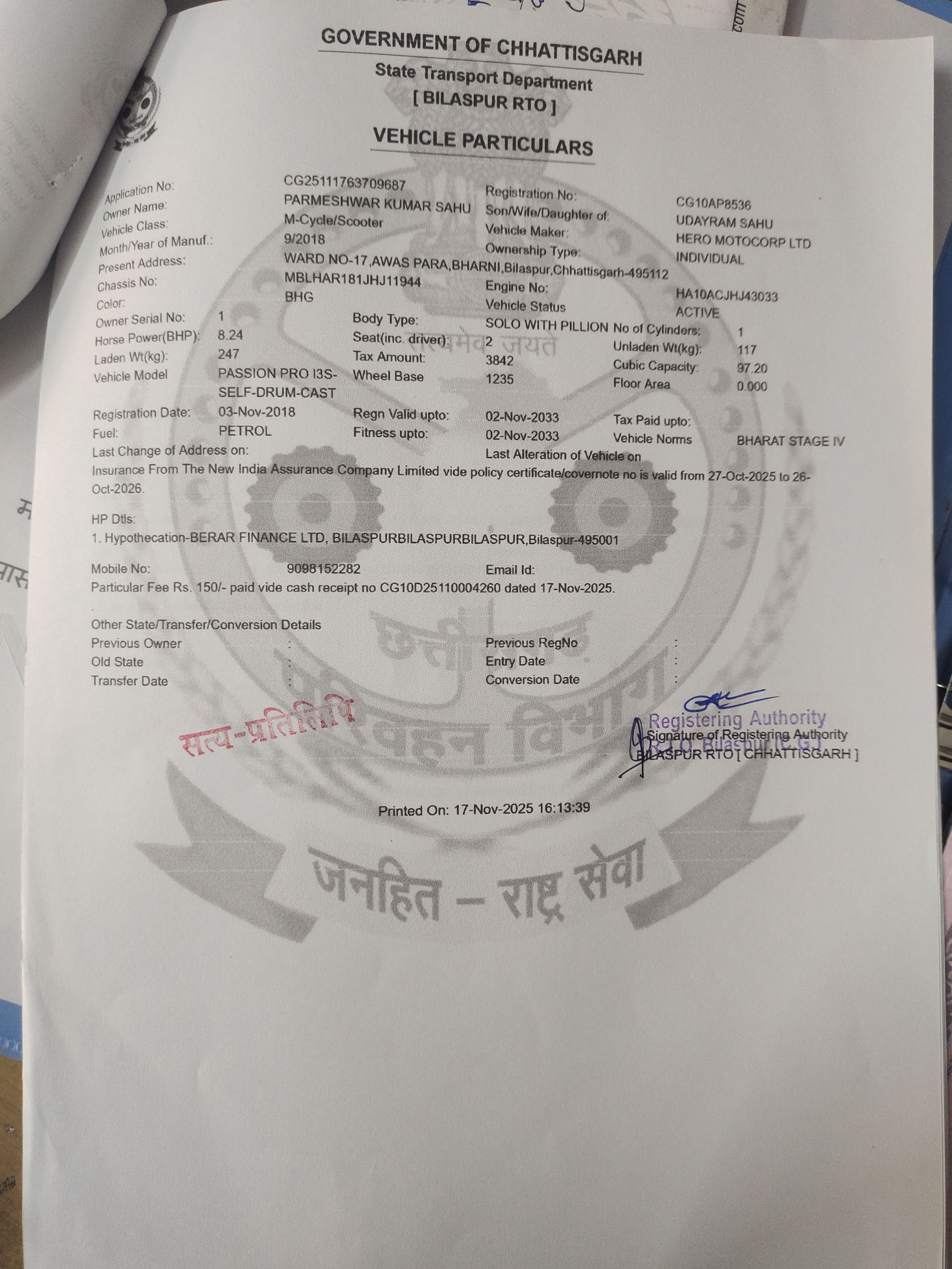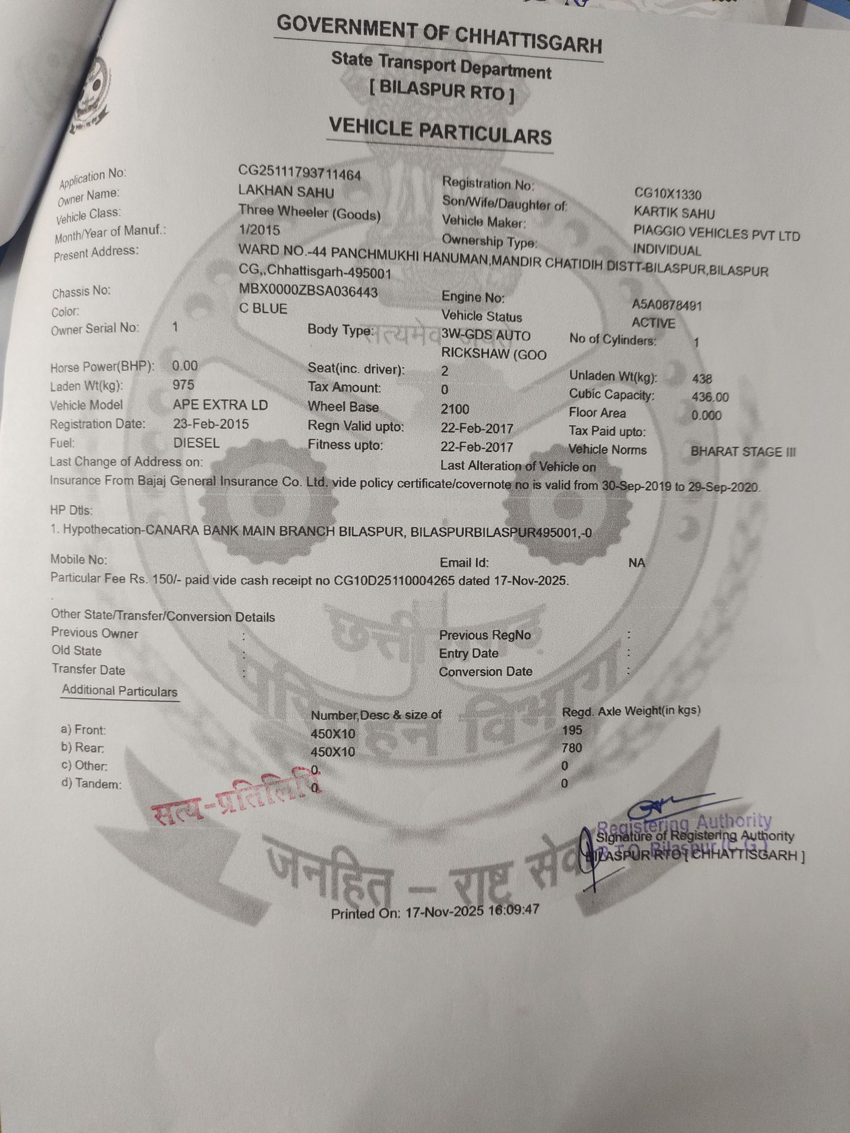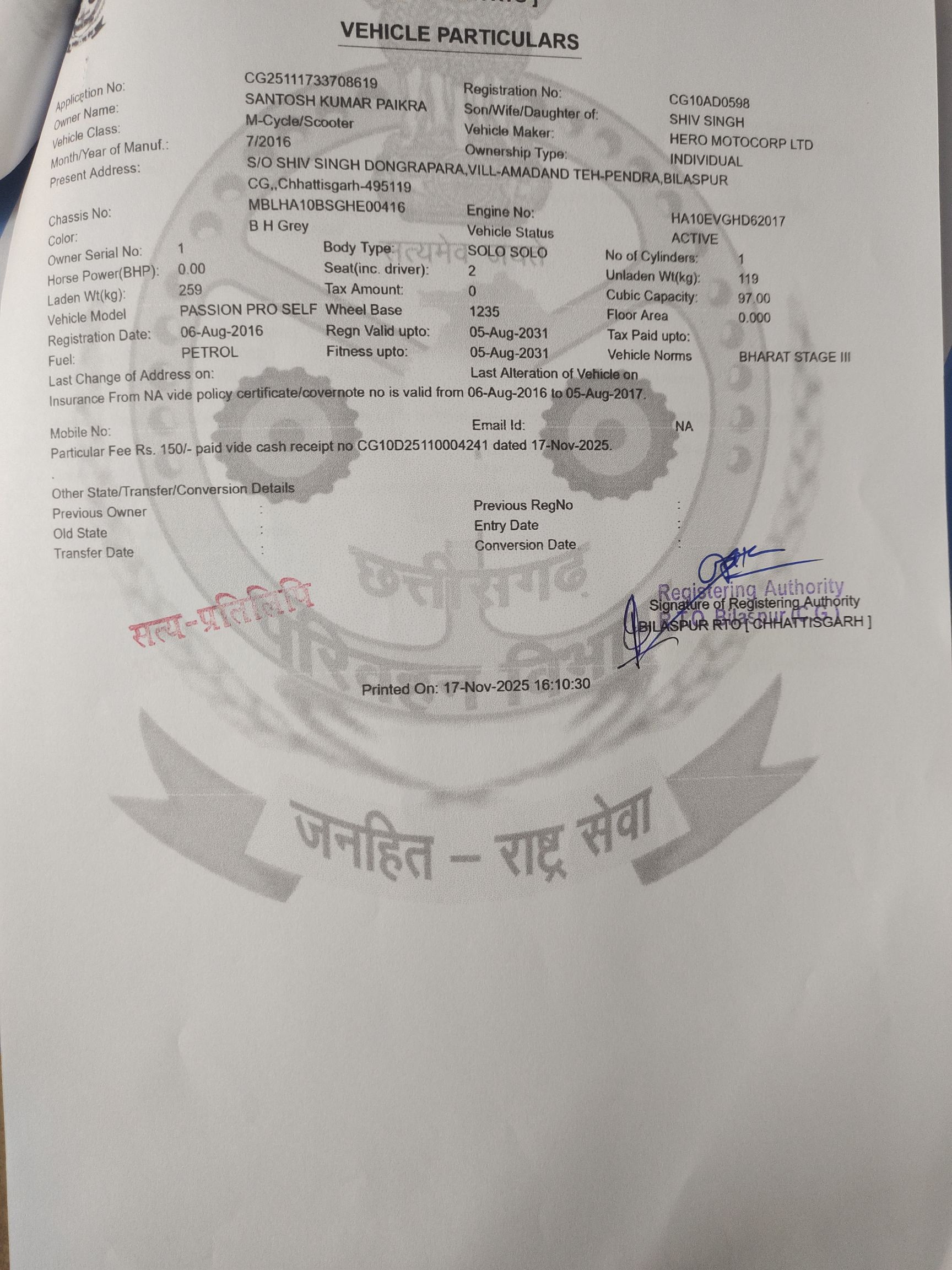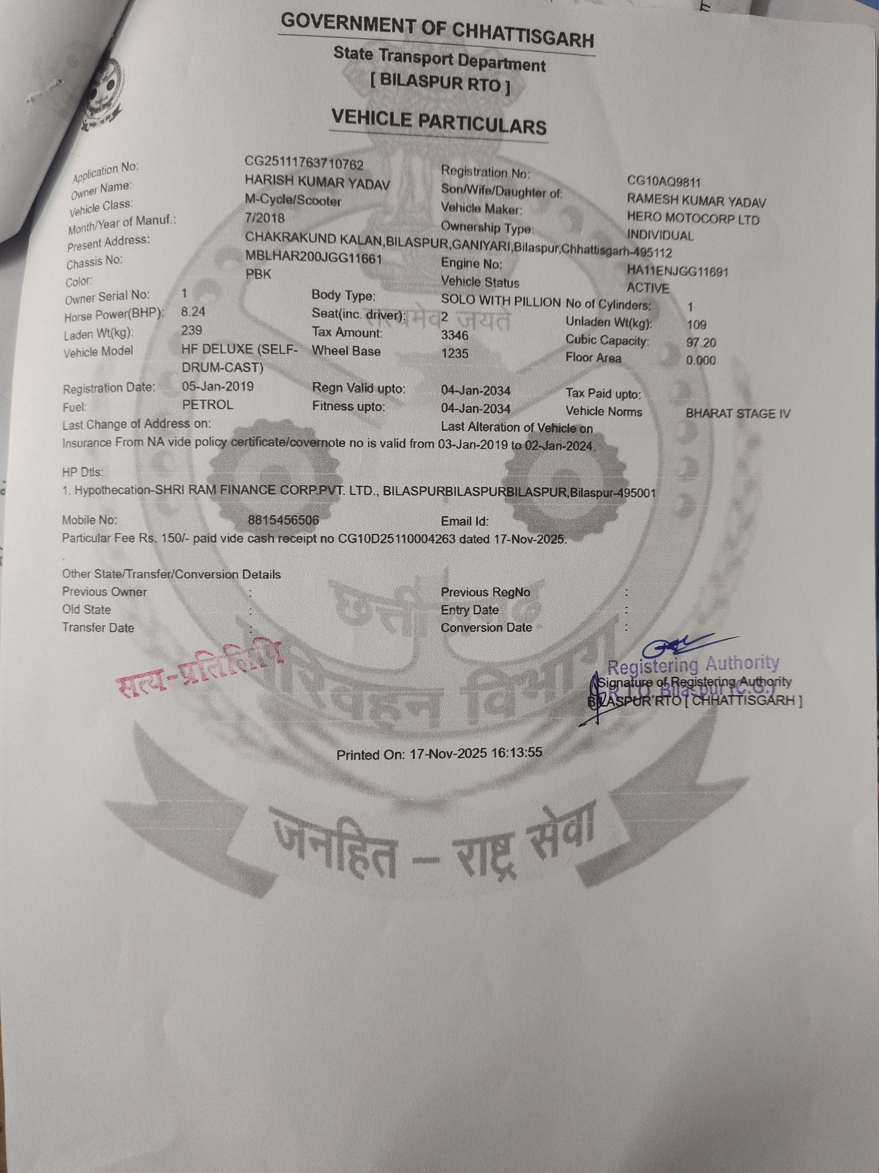 मजे की बात यह है कि बिल में क्रमांक ही नहीं हैं। आवेदक नें बिल में दर्शाये गए वाहनों के नम्बरों व प्रकार प्रमाणिकता हेतू आरटीओ बिलासपुर में सूचना का अधिकार अधिनियम के तहत गाड़ी नम्बरों की जानकारी मांगी गई तो पता चला कि फ़र्जी बिलों में परिवहन के लिए दर्शाया गया वाहन अधिकतर वाहनों के क्रमांक दुपहिया वाहनों के हैं।