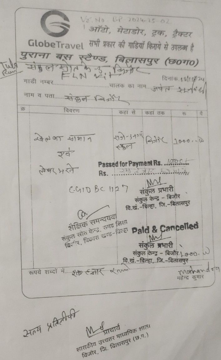 जानकारी के अनुसार संकुल केंद्र शासकीय उच्चतर माध्यमिक शाला बिजौर विकास खण्ड बिल्हा जिला बिलासपुर छत्तीसगढ़ के संकुल प्राचार्य एवं संकुल समन्वयक द्वारा राज्य परियोजना कार्यालय समग्र शिक्षा,छत्तीसगढ़ रायपुर से जारी समग्र शिक्षा की वार्षिक कार्ययोजना एवं बजट में प्राप्त स्वीकृति अनुदान राशि सूची जैसे मेंटेनेंस ग्रांट,टीएलएम ग्रांट,मीटिंग टीए एवं कंटीजेंसी ग्रांट में प्राप्त राशि का फर्जी बिल लगाकर गबन एवं भ्र्ष्टाचार के साथ साथ सरकारी धन का दुरुपयोग गुपचुप तरीके से किया जा रहा था।