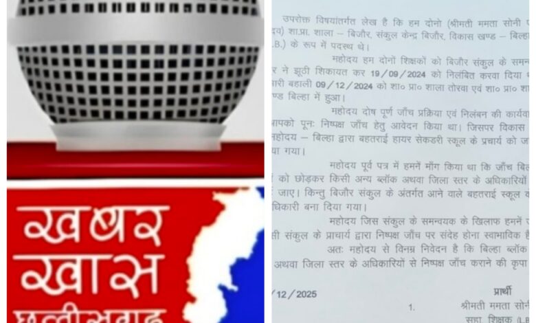 शिक्षिका नें कलेक्टर बिलासपुर को पूर्व में लिखे शिकायत पत्र दिनाँक 08/07/25,का हवाला देते हुए कलेक्टर बिलासपुर के समक्ष जनदर्शन में शिकायत पत्र सौंपा है शिक्षिका के अनुसार हम दोनों (श्रीमती ममता सोनी एवं पोलेश्वर कुमार यादव) शा.प्रा. शाला बिजौर, संकुल केन्द्र बिजौर, विकास खण्ड – बिल्हा में सहायक शिक्षक (L.B.) के रूप में 19/09/2024 तक पदस्थ थे।