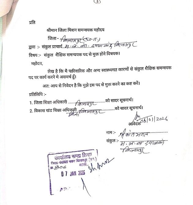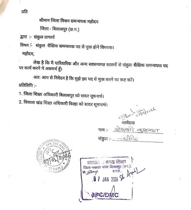 कलेक्टर बिलासपुर द्वारा 21 जनवरी2026 को इस्तीफा स्वीकार किए जाने के बाद भी नौटंकीबाज CAC लोगों द्वारा कूद कूद कर काम किया जा रहा है ऐसी खबरें विभागीय सूत्रों के हवाले से निकल कर सामने आ रही हैं।
