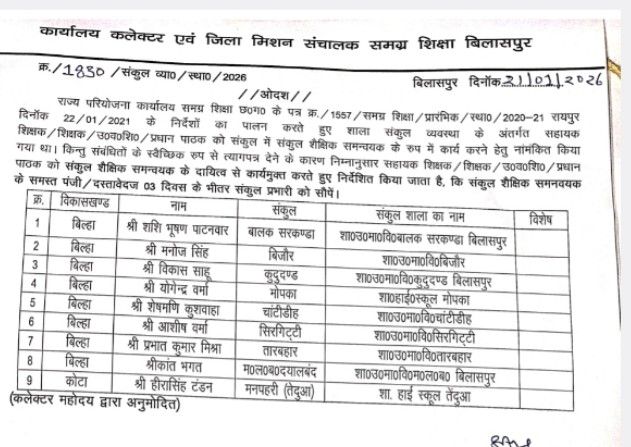 जिम्मेदार तनख्वाह खोर अधिकारियों का मौन, कई सवाल खड़े करता है। एक सवाल यह भी है कि आखिर शहरी स्रोत URC बिलासपुर प्रमुख वासुदेव पांडेय के अधीनस्थ 15 में 8 CAC संकुल समन्वयकों नें URC शहरी स्रोत वासुदेव पांडेय को स्तीफा क्यों नहीं सौपा, या उन्हें इस बात की जानकारी नहीं थी,स्तीफा क्यों बिल्हा विकास खण्ड के विकास खण्ड शिक्षा अधिकारी कार्यालय को नहीं सौपा गया, क्यों सिविल सेवा आचरण नियम विरुद्ध समग्र शिक्षा कार्यालय बिलासपुर में जाकर सौपा गया स्तीफा, आखिरकार शहरी स्रोत समन्वयक होने के नाते वासुदेव पांडेय नें स्तीफा देने वाले CAC लोगों के विरुद्ध क्या कदम उठाया?