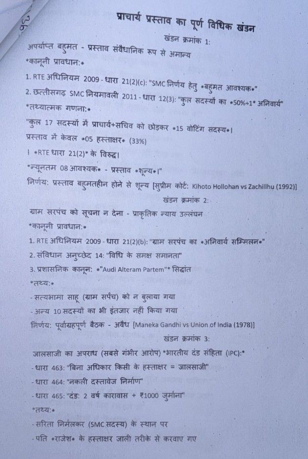 उनका आरोप है कि उन्हें नौकरी से निकालने उन्होंने षडयंत्र पूर्वक समिति की सदस्य सरिता निर्मलकर के जगह राजेश निर्मलकर से फर्जी हस्ताक्षर कराया गया।